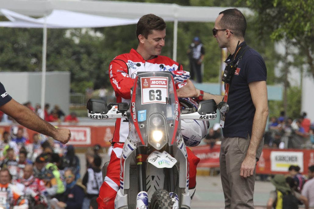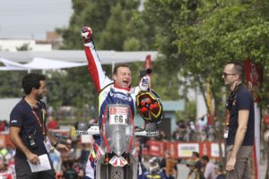 Charles Cuypers est parti tendu. Cela fait longtemps qu’il n’a pas roulé au Pérou, les dunes ne sont pas les mêmes qu’en Afrique, il faut un temps d’adaptation. Il se sent bien sur la moto même s’il a fait une petite chute sans gravité. Il a pu goûter le sol péruvien ! Il a également fait une petite erreur de navigation mais, maintenant, il faut conjurer le sort. Je le sens prêt pour la suite.
